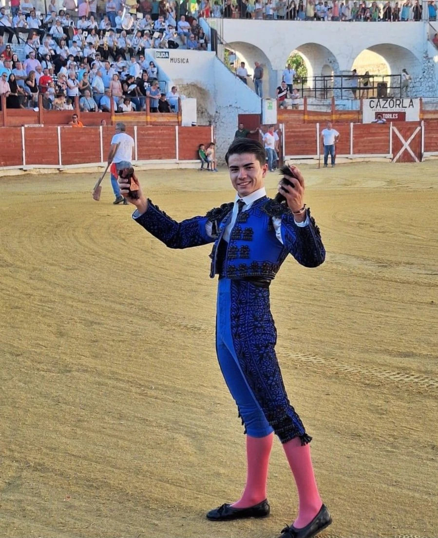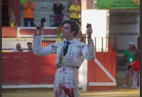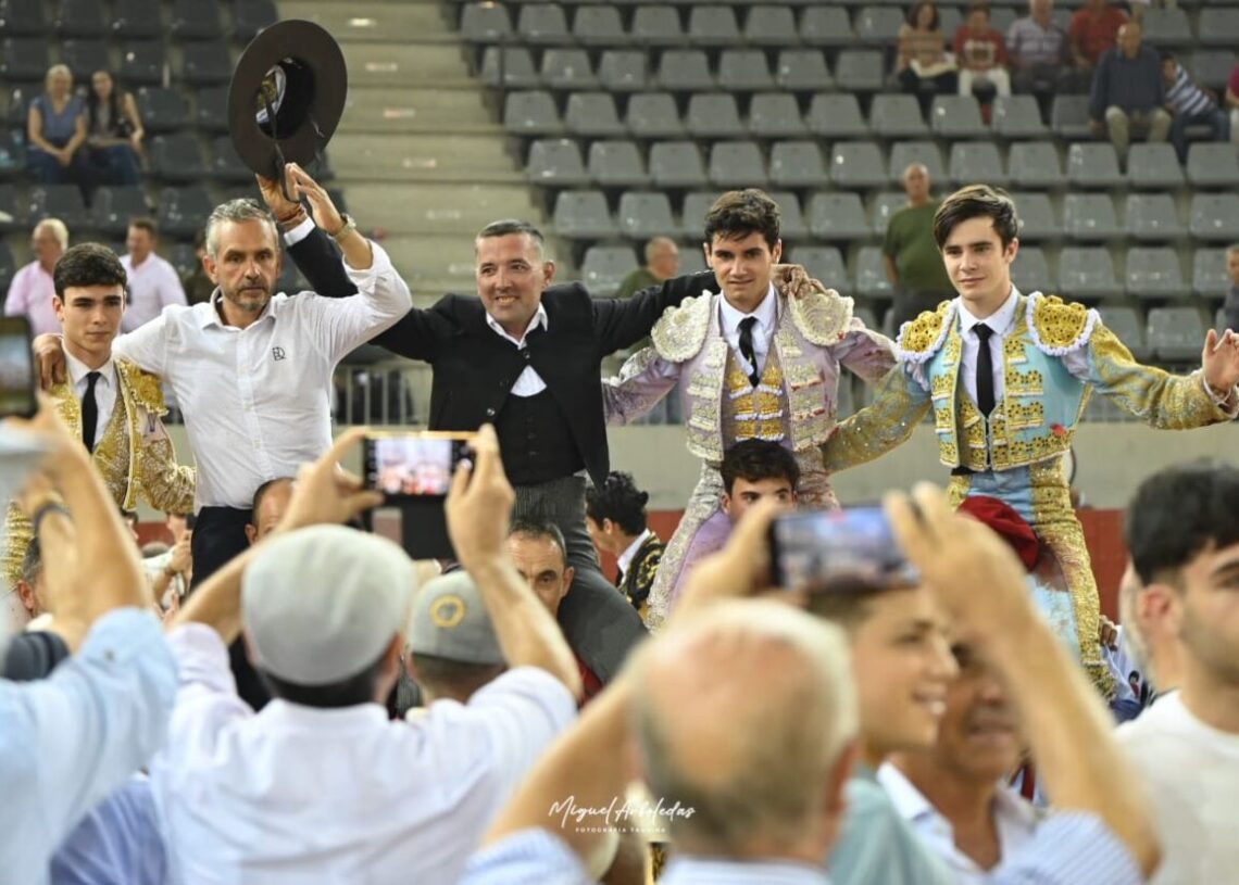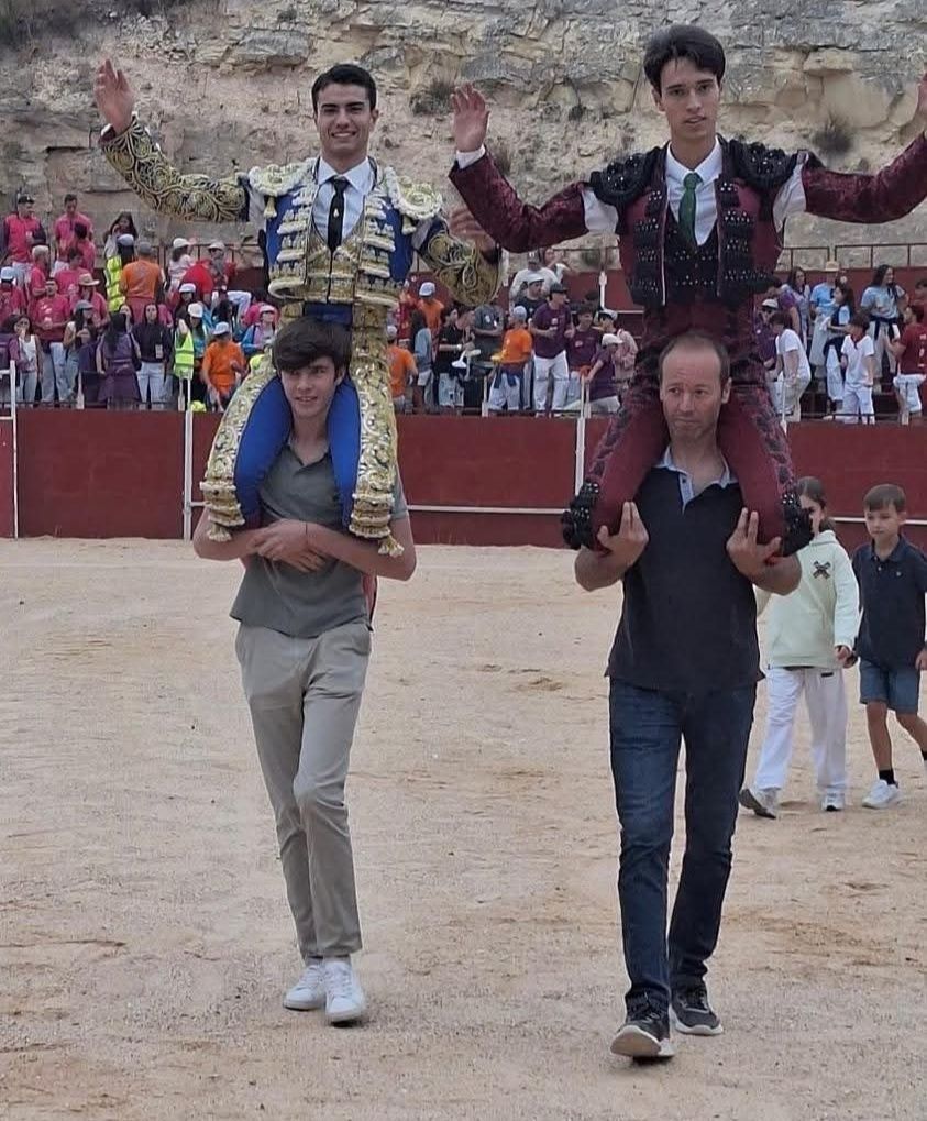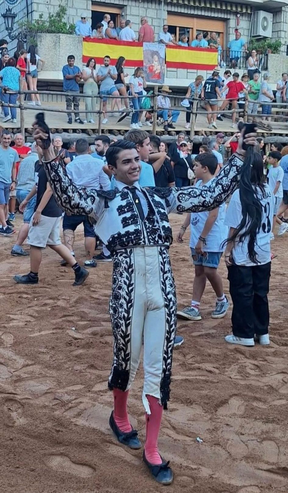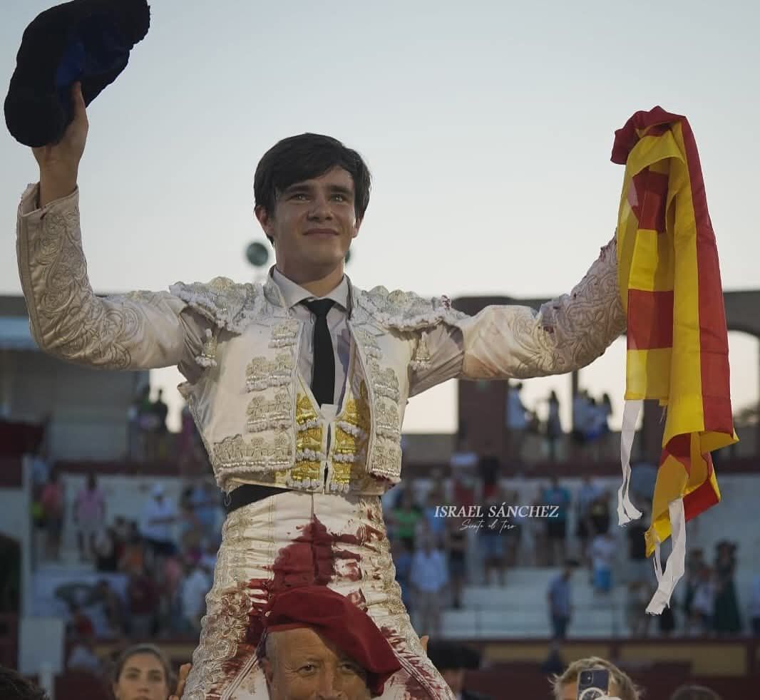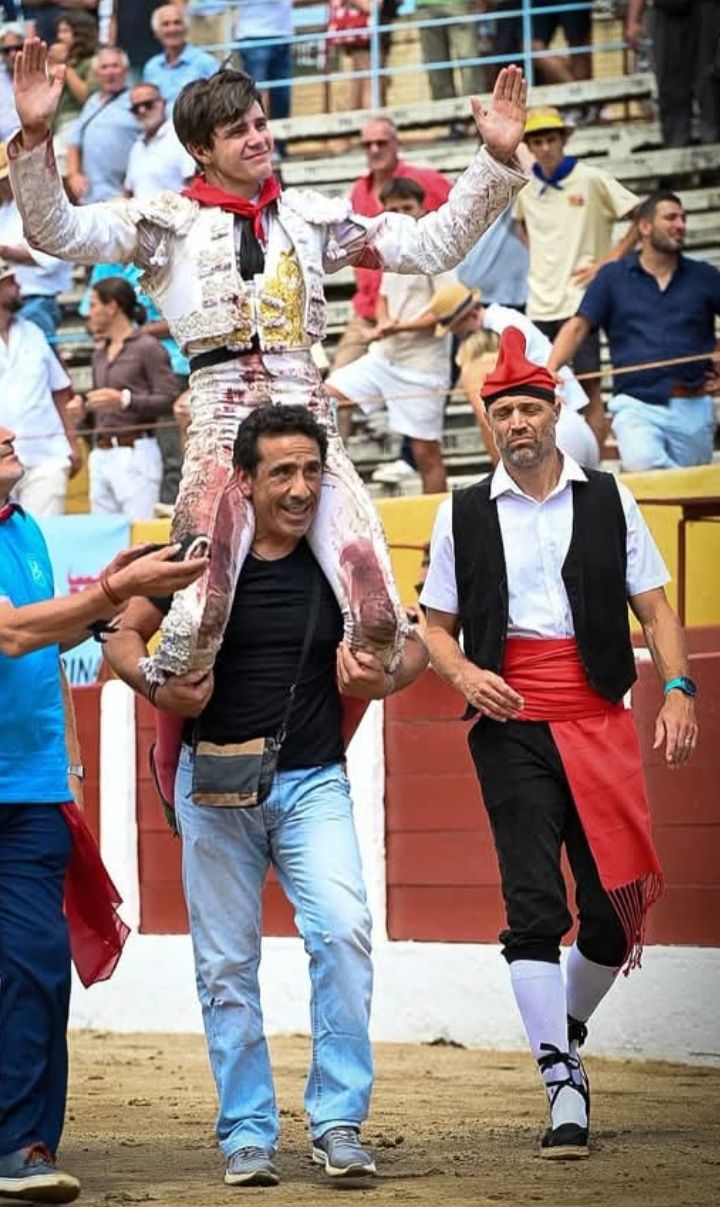 15-09-2025 Otro torero catalán, con un verano de éxitos: el tarraconense MARCOS ADAME. En la foto, tras cortar dos orejas en Sepúlveda (Segovia) a hombros de MARIO VILAU.